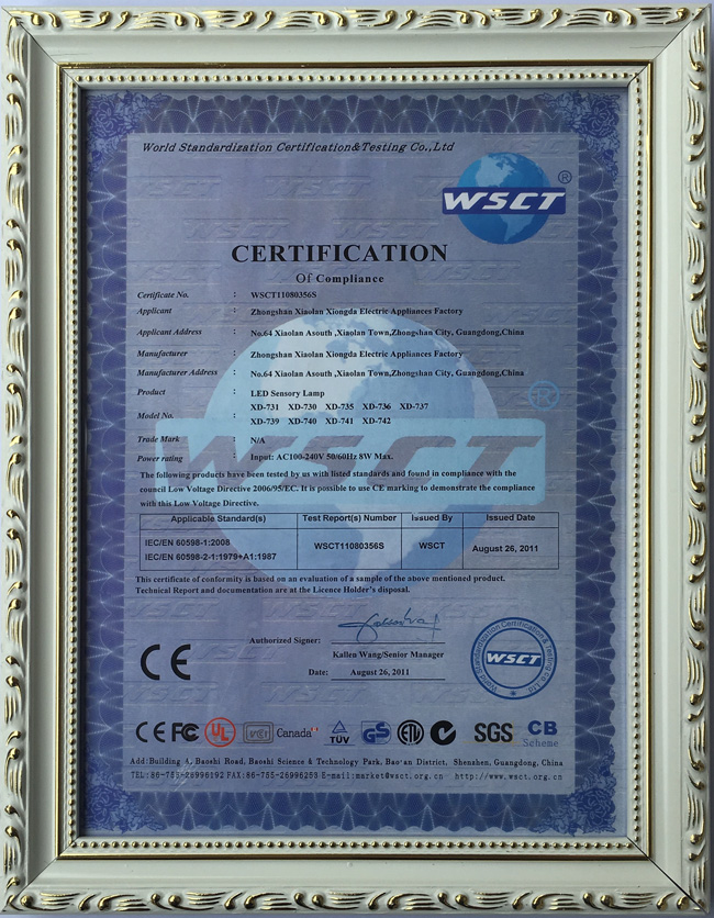 感應(yīng)燈(CE)認(rèn)證證書