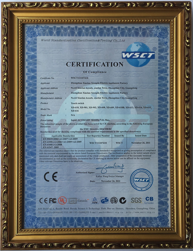電容式觸摸(LVD)認(rèn)證證書